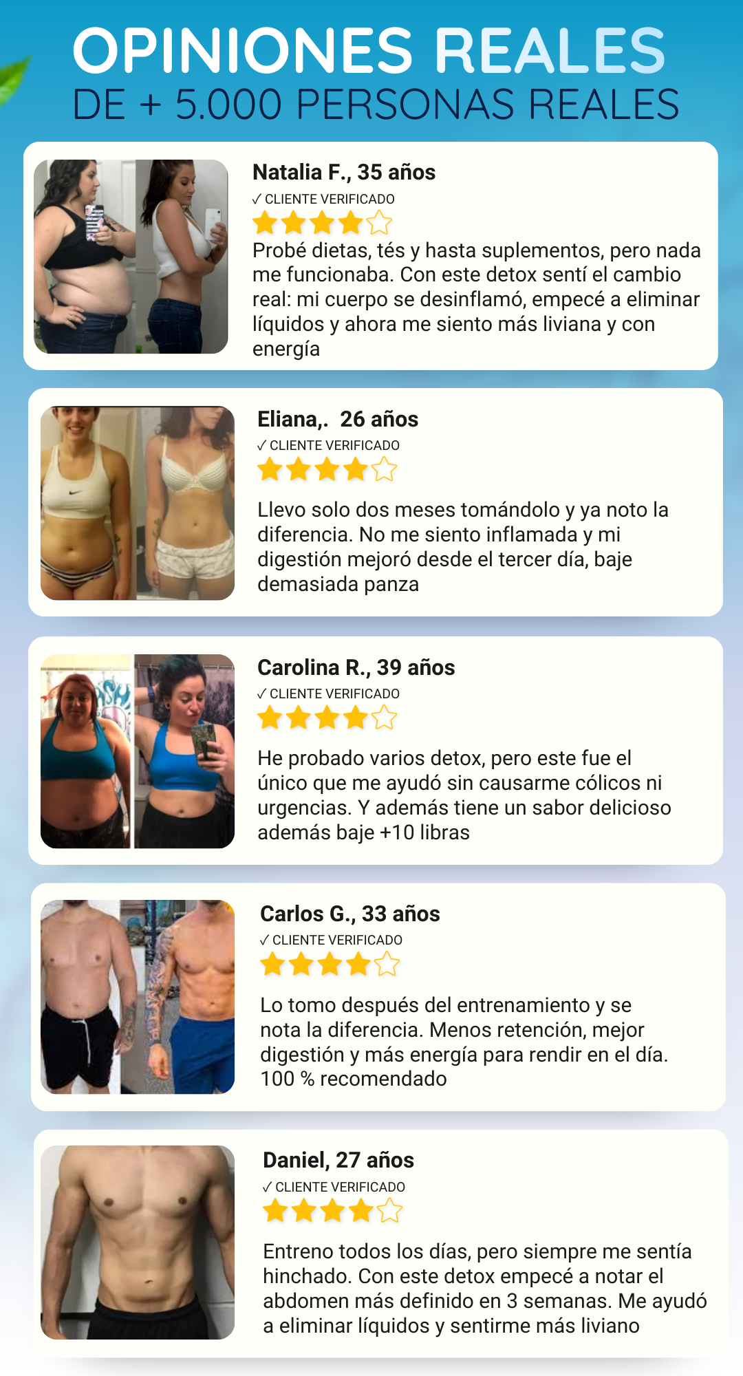 Una amiga me lo recomendó porque siempre me quejaba de la hinchazón. Ahora puedo salir a cenar sin pensar en cómo me veré después. ¡Un alivio total!